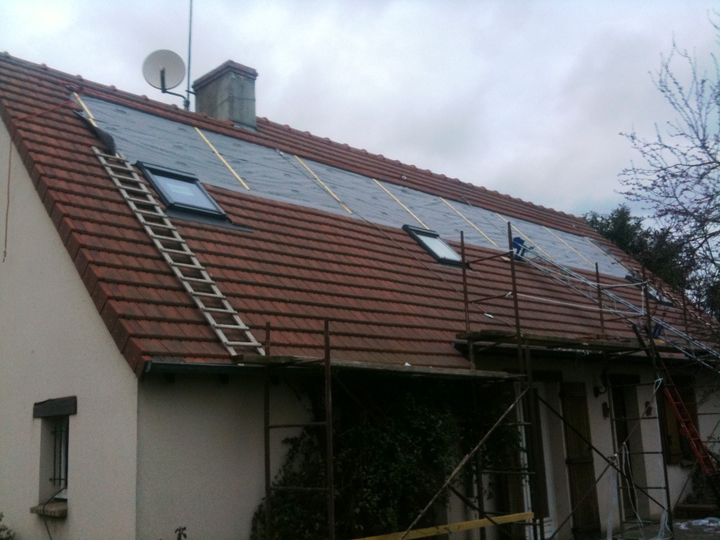 Générateur PV de 2960Wc soit 2 x 8 modules ALEO S77 sur un toit de 100% (45°) avec ajout d’un Vélux.